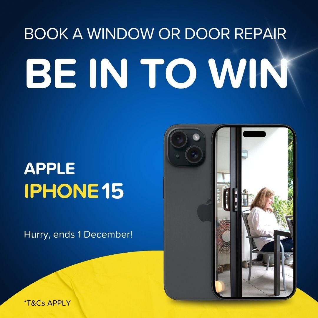 Get those windows & doors in tip top shape for Summer. Book a repair job with Exceed® for your windows & doors before the 1st of December 2024 and be in the draw to win a brand new iPhone 15*!