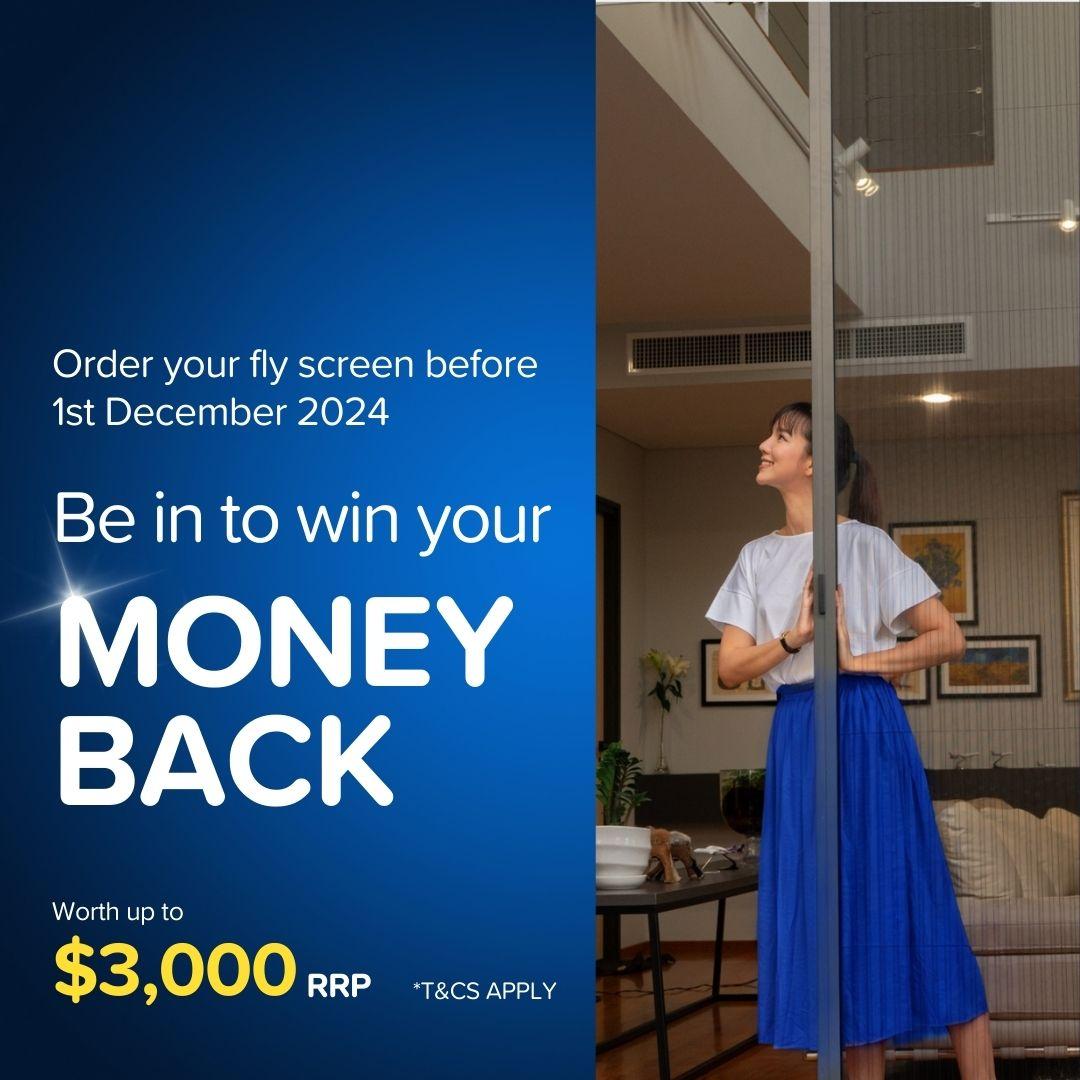 Order a retractable fly screen with Exceed® before the 1st of December 2024 and be in the draw to win your money back, up to the value of $3000*.