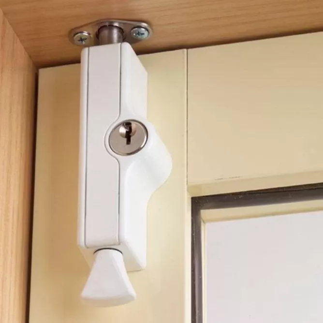 Tip: When we fit patio bolts in peoples properties we often put a second hole so the door can be bolted in the open position to allow air to flow through the house but a gap small enough to stop people from walking through an open door uninvited. There are a number of different versions of patio bolts but all have a bolt lockable by key some are small and some are large but all do the same thing. This can also be colour matched to your joinery.