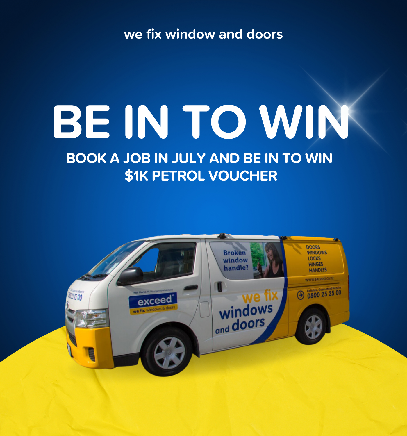 Fix that window or door with Exceed, and you could win a $1,000 petrol voucher! Just book a job in July and you're in the draw. *Terms and Conditions apply.