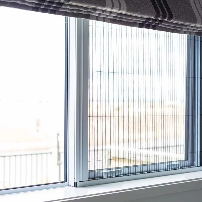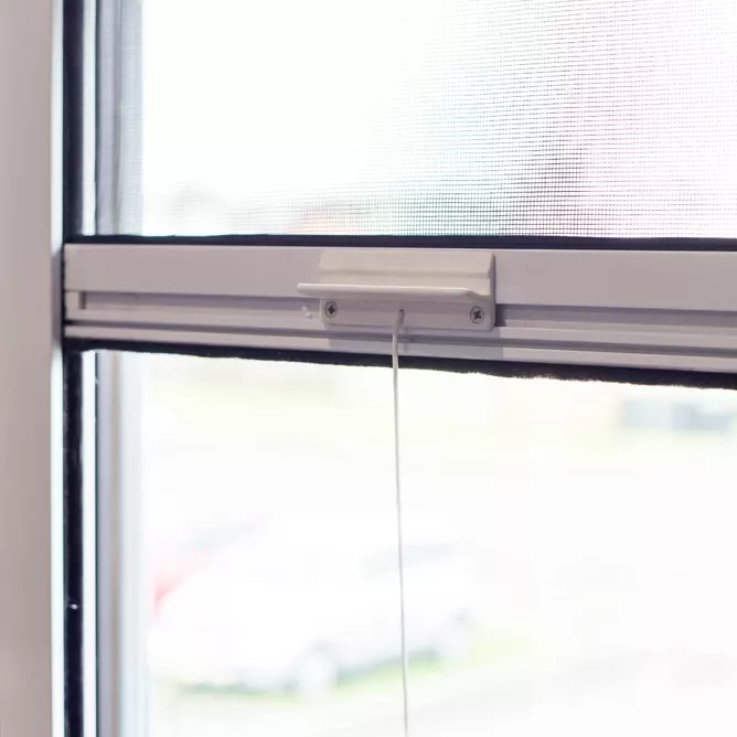 Easy-to-clean window sill, there are no channels and unsightly dust traps on this screen design. The catch plate that holds the screen open is neatly built in to the end of the mesh guide rails providing an easy-to-clean window sill.